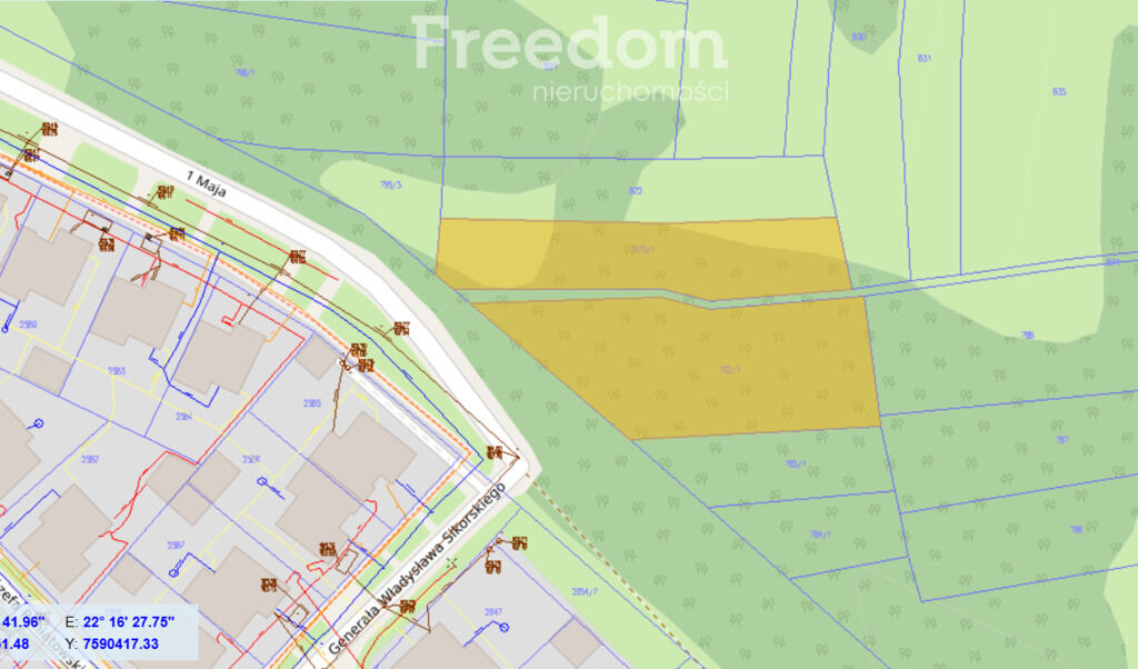 Działka budowlana w Ulanowie – ul. 1 MajaNa sprzedaż działka nr 782/1 o powierzchni 1152 m², z wydanymi